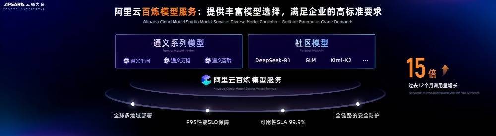 周靖人分享称,到今天,阿里云的百炼模型服务已经完成了全球部署,部分模型的生成速度能够达到100TPS。在过去的12个月里面,百炼模型服务的调用量增加了15倍。