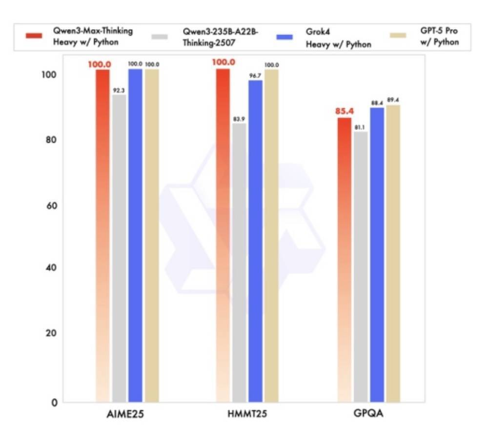 Thinking版本在AIME25评测中得分81.6,显著高于Qwen3-235B-A22B的70.3分,HMMT评测中预估冲击95分,在SuperGPQA、LiveCodeBench、τ²-Bench等任务上也均优于Qwen3-235B-A22B。